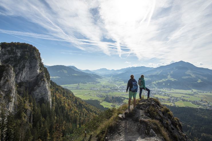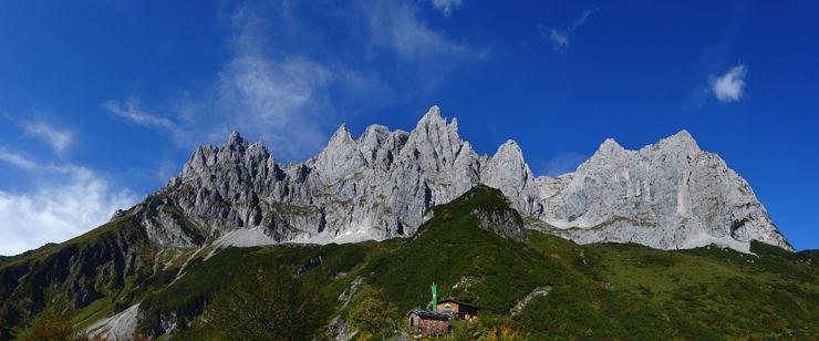 The Wilder Kaiser Steig was established in 1990 by linking several existing trails and paths below the rock walls of the Wilder Kaiser massif. Plan two days to hike the entire length of the trail. Overnight accommodation is available at Gaudeamushütte (1260m, AV) and Gruttenhütte (1620m, AV). Alternatively you can do sections of the trail as day hikes, with starting point in any of the towns between St. Johann in Tirol and Kufstein. Please note that Schaflsteig (closed temporarly) and Jubiläumssteig are for experienced hikers only.