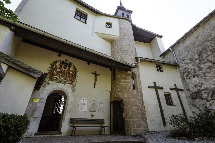 La piccola cappella di pellegrinaggio domina la valle, circondata da alberi secolari e da un’atmosfera di profonda quiete. Dal Burgfried, l’antico torre medievale, si apre un panorama impressionante sul Kufsteinerland – un luogo che invita a soffermarsi, riflettere e meravigliarsi.